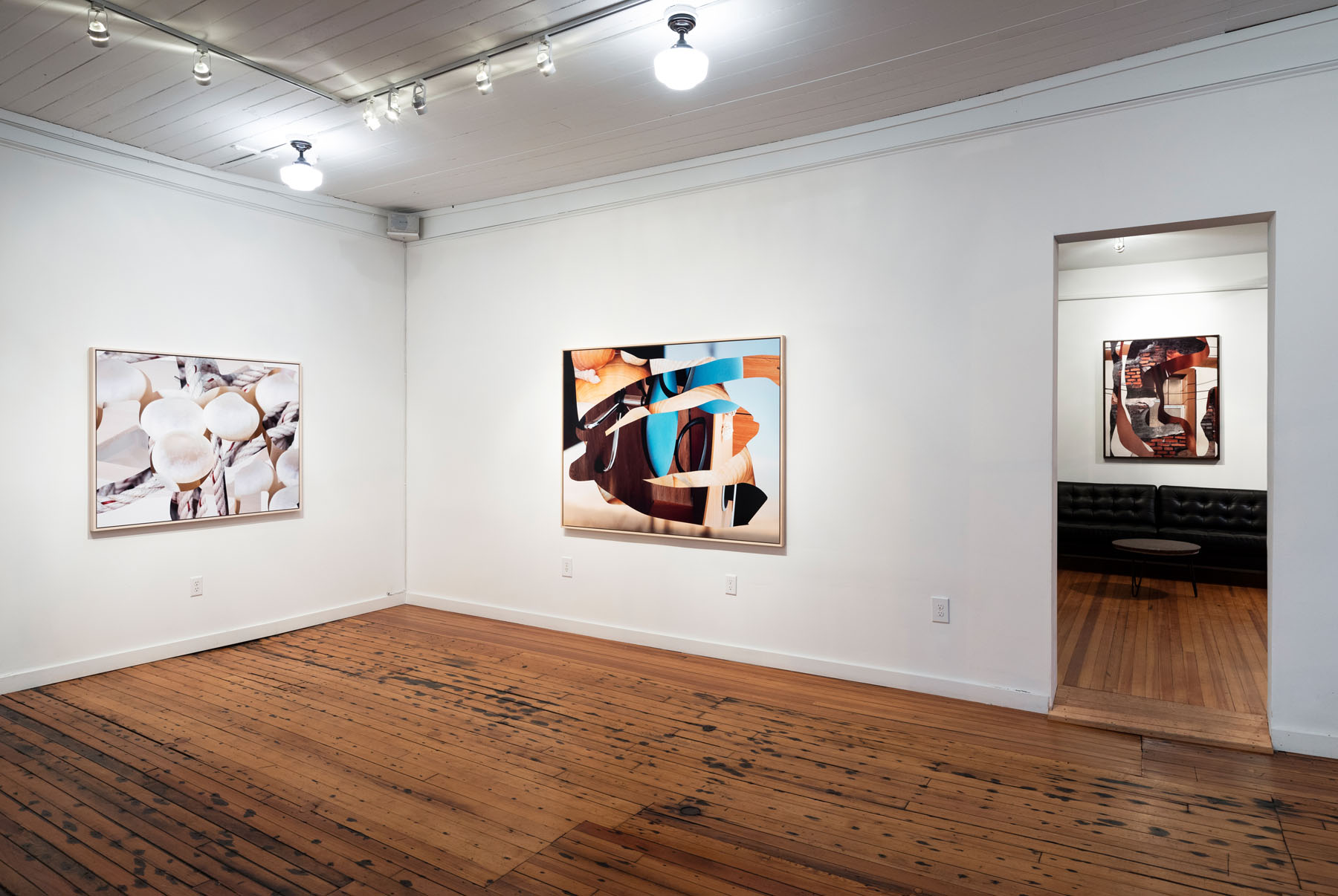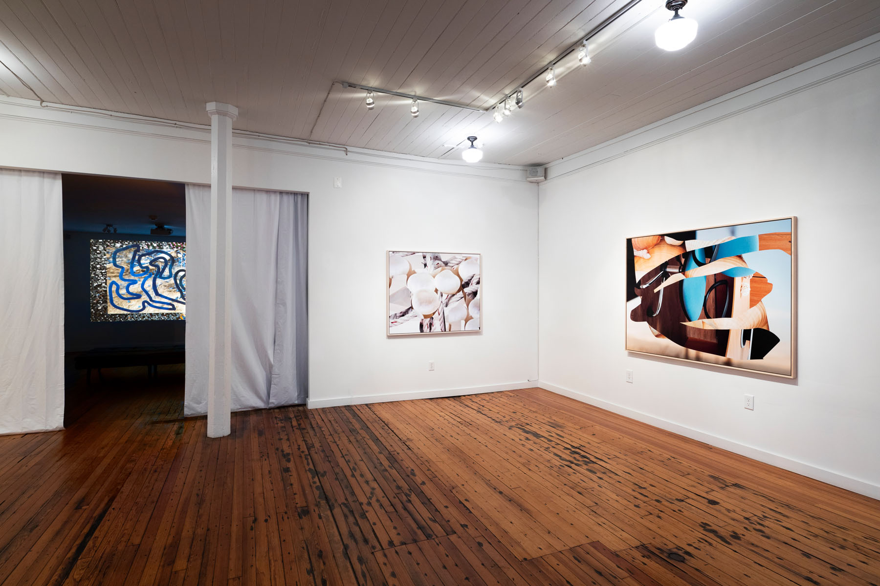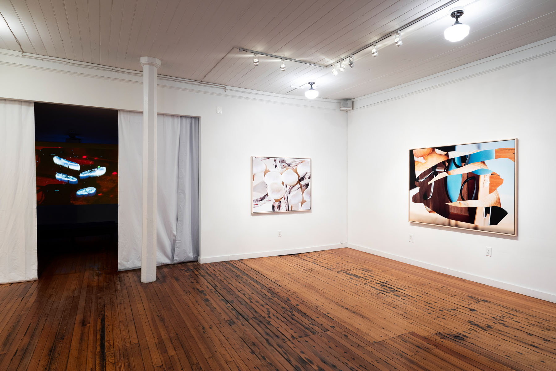 Kate Steciw and Theodore Darst position themselves as digital flâneurs of sorts, playfully strolling through screen environments, making associations freely between images, places, and digital artifacts. Their productions employ sets of divergent yet interrelated skills, each of which fall uniquely within the domain of labor (typically freelance), formerly performed by the artists in varying capacities. Steciw’s series of dye-sublimation prints on aluminum, occupying the front gallery at Liberal Arts, are digital collages composed of images she recruits from varying databases: stock photos, archives, social media accounts, image searches, etc. She considers the mark making that establishes the borders of her collaged layers to be a welcome mediation—the collaborative residue of machine-human interaction. The rear gallery premieres Darst’s diaristic, single-channel video titled Cloud Requital & The-Grift. Here Darst incorporates video footage shot on location with digitally-born, 3D animations accompanied by 2D overlays drawn frame by frame. The video is a futuristic meditation on the artist’s recent trips between New York, his grandfather’s western Massachusetts painting studio, and the Catskills. The seamless looping of the visuals, with audio composed by musician Kevin Carey, mirror the artist’s peregrinations and provide the viewer with an experience that can be taken up or left behind at any moment. Both Darst and Steciw approach digital media as an expansive landscape where attentions seamlessly cascade from one perspective to the next. Their treatments of this landscape explore its construction, prospecting its fissures, its multitude of layered images, the simultaneity of vision, and its “higher ground” in terms of visual language. Theodore Darst (b. 1986, New York City) lives and works in New York City. Cloud Requital & The-Grift is his eighth collaboration with composer and producer Kevin Carey (b. 1992, Boston, MA). Darst’s work has been the subject of solo exhibitions at Lubov, New York; Magenta Plaines, New York; and at Unpainted, Lab 2.0, Munich. His videos have been screened extensively at national and international venues, including TEAM Gallery, New York; The Drawing Center, New York; Mirko, Zurich; The Museum of Contemporary Art, Los Angeles; Museo de Bahia, Salvador, Brazil; The Institute of Contemporary Arts, London; and the Museum of Contemporary Art, Chicago. Kate Steciw (b. 1978, Bethlehem, PA) lives and works in Woodstock, NY. Her works have been the subject of numerous solo exhibitions, including Gamma Galeria, Guadalajara, Mexico; Galerie Christophe Gaillard, Paris; Neumeister Bar-Am, Berlin; Higher Pictures, New York; and Levy.Delval, Brussels. She has participated in group exhibitions at Hauser & Wirth, New York; International Center for Photography, New York; Bodega, Philadelphia; The Yves Klein Archive, Paris; Anat Ebgi, Los Angeles; Pioneer Works, Brooklyn, New York; and MAMO, Marseille, France.