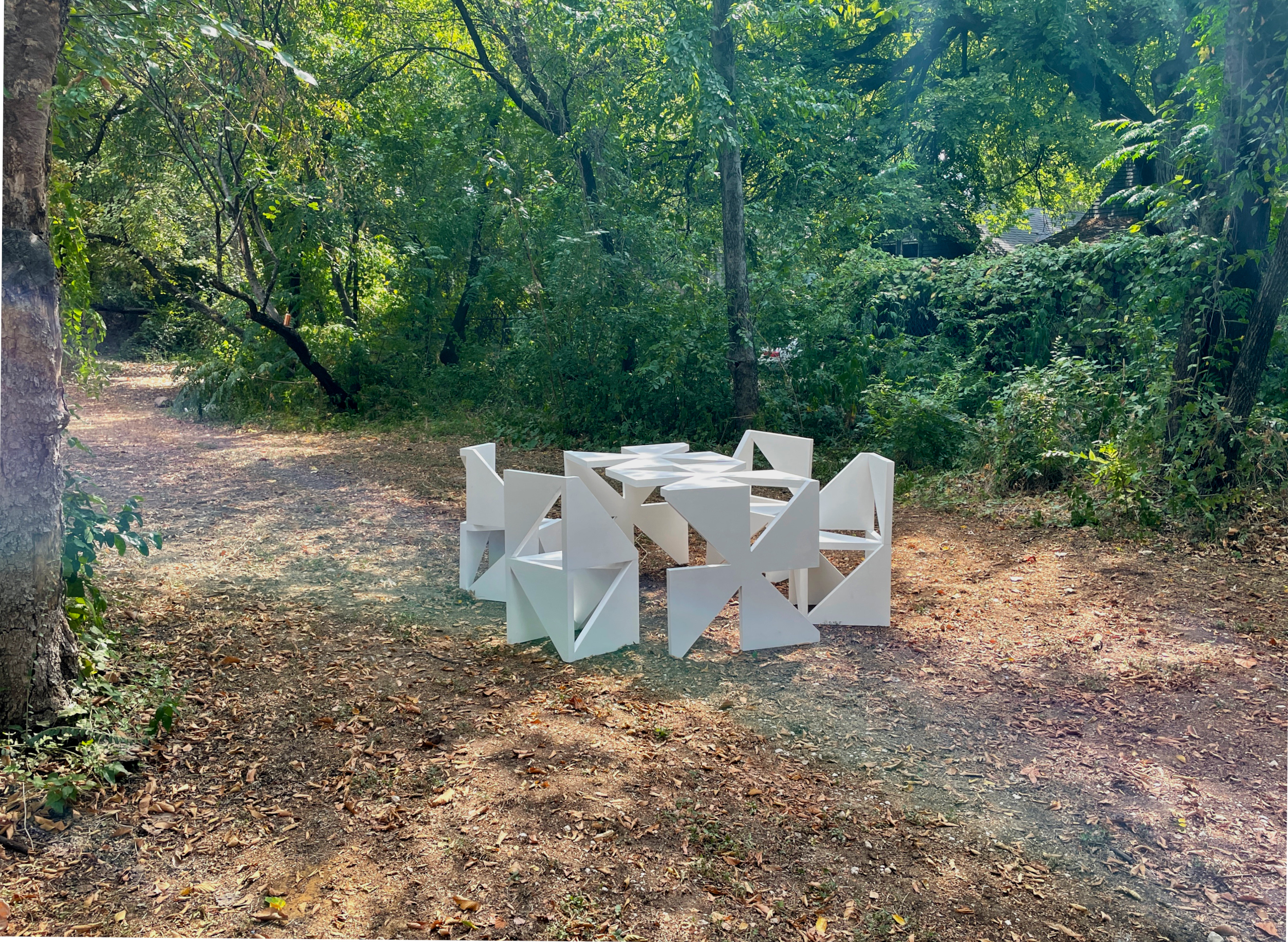 Andreas Angelidakis Philosophy Pattern Table and Chairs, 2006 Plywood, paint, hardware Table: 31 ½” x 67” x 31 ½” Chair: 33 ½” x 18 ½” x 18 ½” |