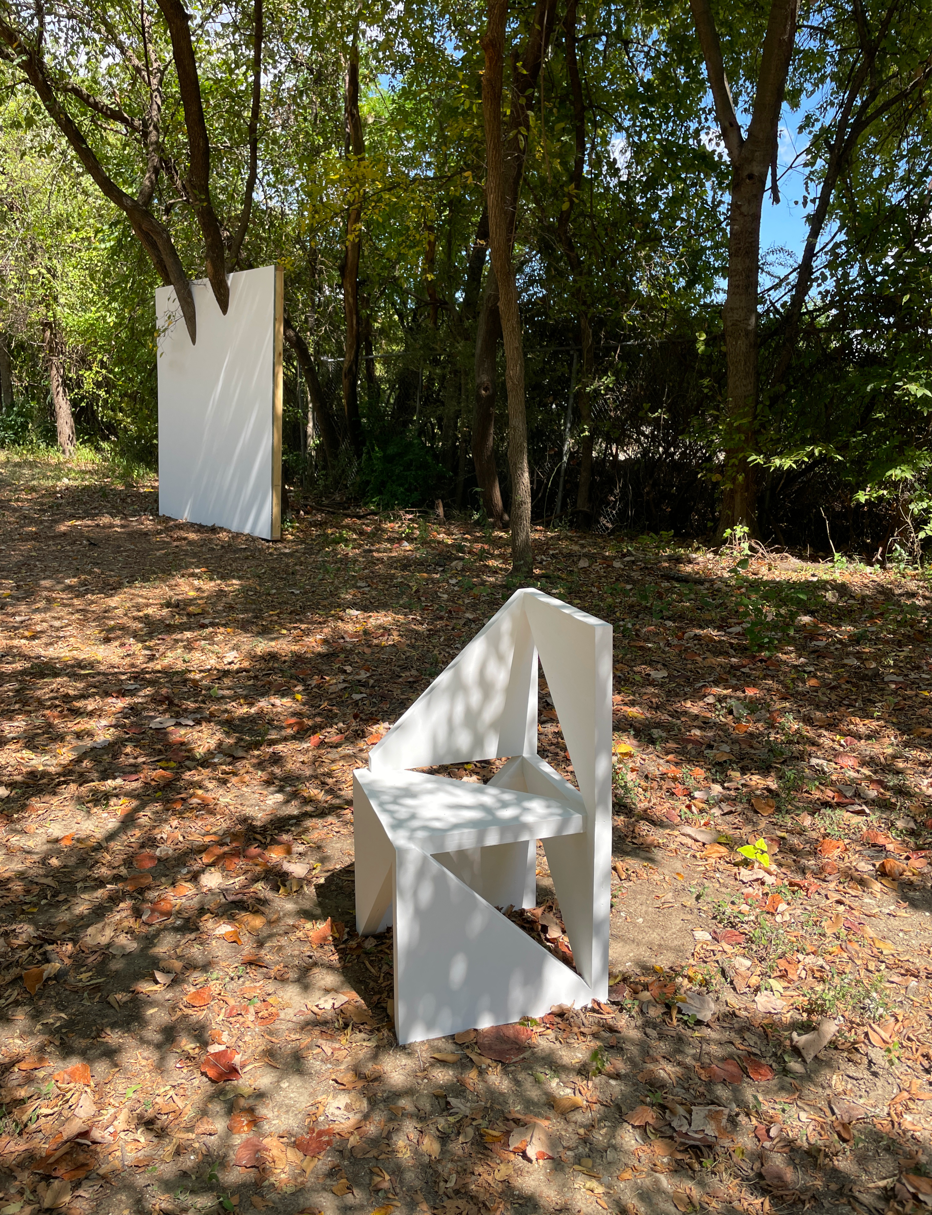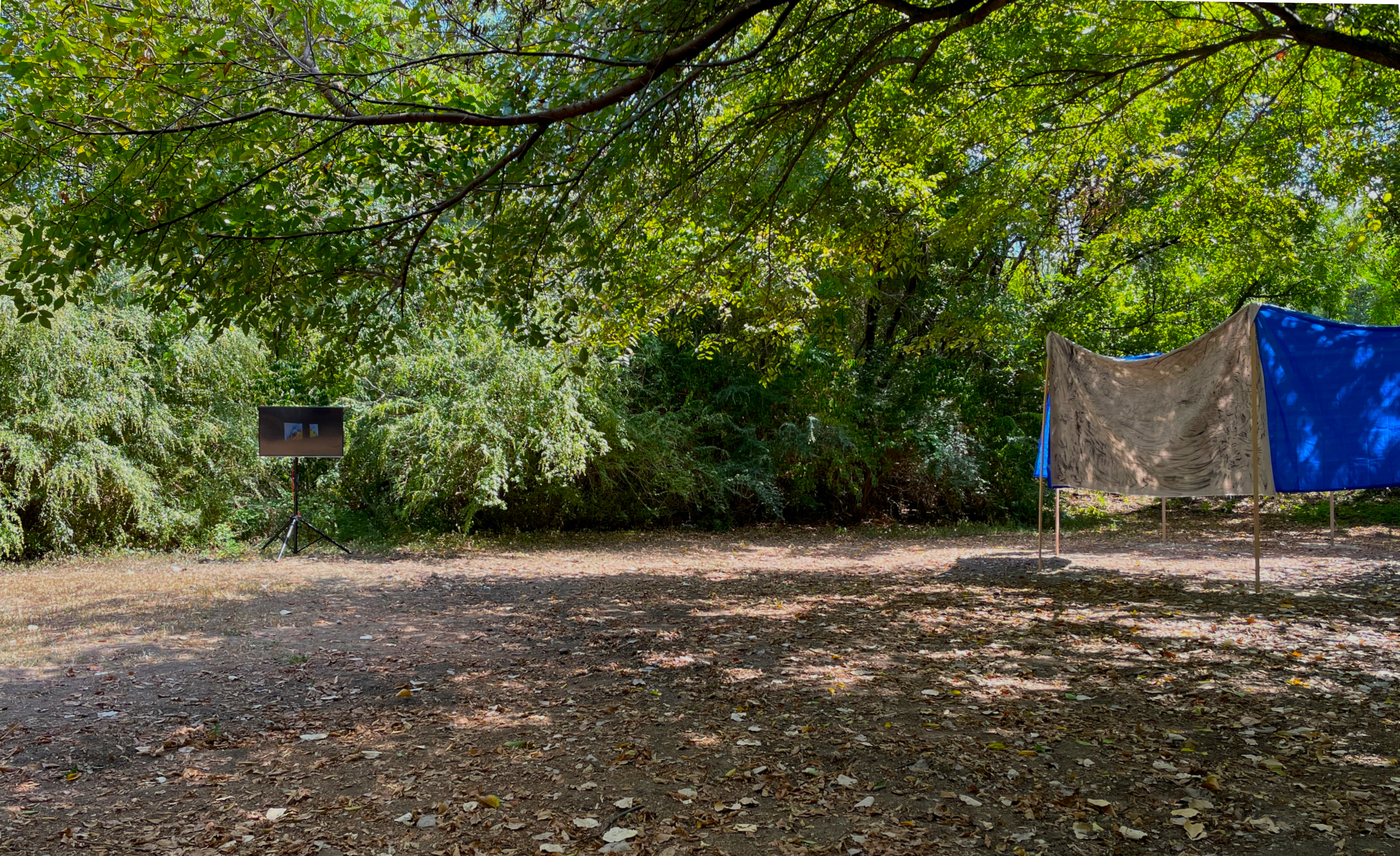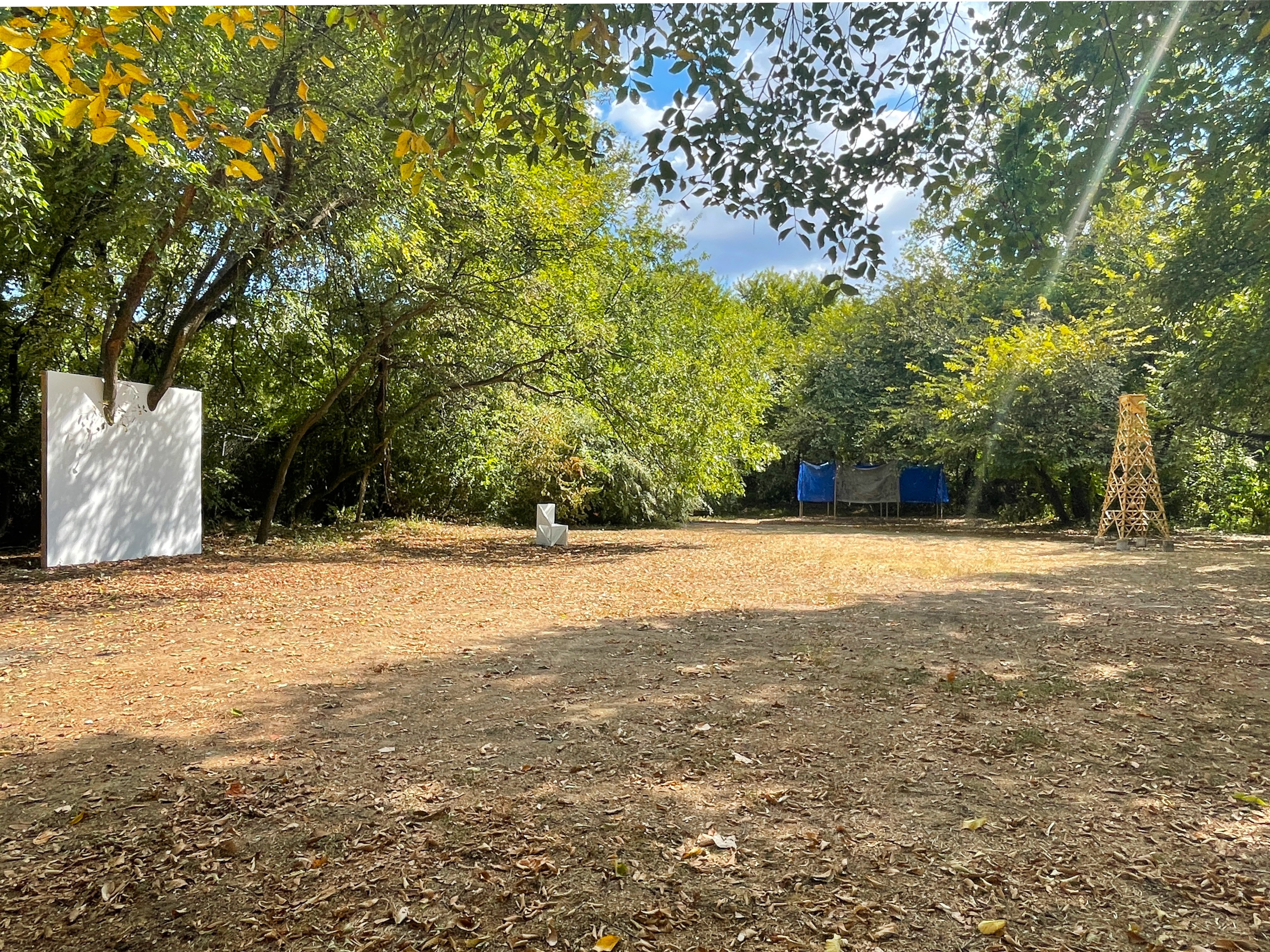 The exhibition’s title, Nearly Natural, is appropriated from the American company by the same name—a vendor of artificial, silk trees and hedges. The titling reflects the contemporary status of the landscape as a massively collaborative, mediated plain where a multitude of disparate technologies have made marks, sculpting its meaning and exchanging its elements. The presented artists express understandings of the landscape that question the interrelationships between technologies of illusion and the act of inhabiting a site. The exhibition unfolds with interplay between the digital and the physical; visibility and invisibility; tourism and residency; and the historical and personal. Andreas Angelidakis (Greek, born 1968) is an artist and architect working in Athens, Greece. Angelidakis’s practice addresses the ever-narrowing divide between the our experiences of digital and physical space. Included is his 2006 work Philosophy Table and Chairs, reproduced in Texas for outdoor display. The furniture set is based on a browser-based work by artist Japanese performance artist Mai Ueda. Angelidakis proposes that the shift of digitally-born images to the physical world are contemporary ruins. Gabriel Cohen (American, born 1995) is an artist, author and curator living and working in Los Angeles, CA. Cohen’s sculptural works investigate the processes of myth-building particularly how it relates to materials and urban infrastructure. Here, he exhibits a pendlum-cum-radio tower. Constructed out of finished plywood, the tower’s function is inverted--acting as a receiver rather than a transmitter. The broadcast it receives and amplifies is a speech by American Footballer, Ray Guy in which he recounts a rambling anecdote of atmospheric conditions and their effects on his radio as a child. The sculpture is a waypoint where the two invisible forces of atmosphere and radio waves meet. Julien Creuzet (French-Caribbean, born 1986) lives and works in Paris, France. Creuzet reconsiders the history of his native Caribbean by way of landscape. The narratives presented in his works bend space and time, inextricably linking disparate geographies through poetics. His work frequently references the landscape of the ocean—its surface and its depths—as the site of cultural trauma and erasure. Reflecting on the works of Aimé Césaire and Édouard Glissant his work blends fiction with investigations of regional and diasporic histories. Creuzet’s video is composed of seemingly infinite scrolling illustrations of feathers, rendered in a manner reminiscent of 18th Century European ethnography—colonial mythology all the way down. Ricardo Morales-Hernández (American, born 1984) lives and works in San Juan, Puerto Rico. Morales-Hernández exhibits his first architectural construction—a closed circle of blue construction tarps and a single canvas. In artist-made charcoal on both recto and verso, the canvas depicts imaginary landscapes which give a first impression of either text or musical notation—both references welcomed by the artist. His work addresses the touristic language enshrouding his native Puerto Rico, “tropical as paradisiacal,” as a semiotic technology. Produced in his outdoor studio, the canvas holds both the marks of the artist, as well as the direct interventions of the landscape itself. It survived two major hurricanes in 2017: Irma and Maria. Letha Wilson (American, born 1976) is a conceptual artist working at the intersection of sculpture and photography. She is based between New York City and the Hudson Valley, NY. She contributes a temporary outdoor construction--a white, gallery wall physically intersecting two of the site’s resident trees. Frontally, the work appears as a white wall with the tree’s branches penetrating its surface. The siting of Wilson’s intervention attends not only to the flora’s interaction with her artificial construction, but to the light, the shadows cast throughout the day, suggesting a photographic, momentary interpretation of experience. |